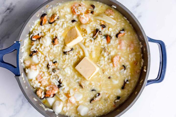 Maslo - bo naredilo rižoto kremasto, masleno in polnega okusa. Doda tisto značilno piko na i.